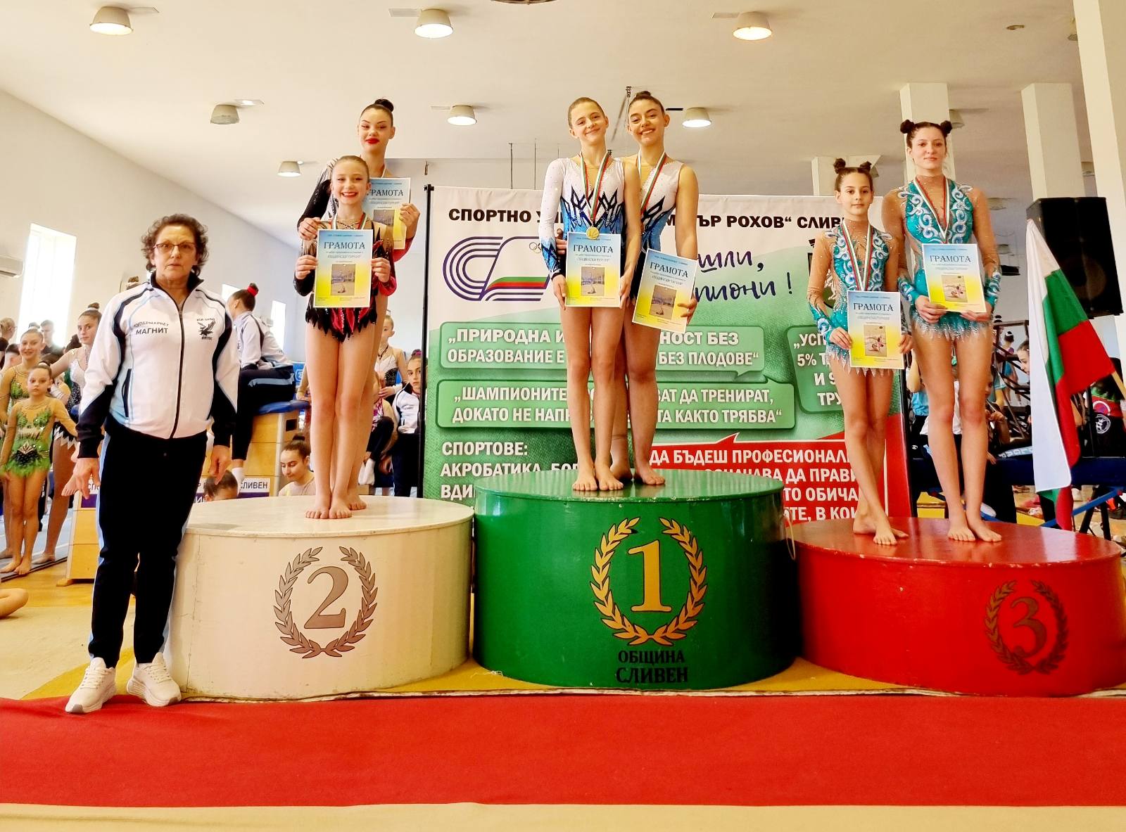 В отделните възрастови категории домакините от спортния клуб по акробатика „Стефан Данчев“, успяха да завоюват 10 първи места, 9 втори и 4 трети места.