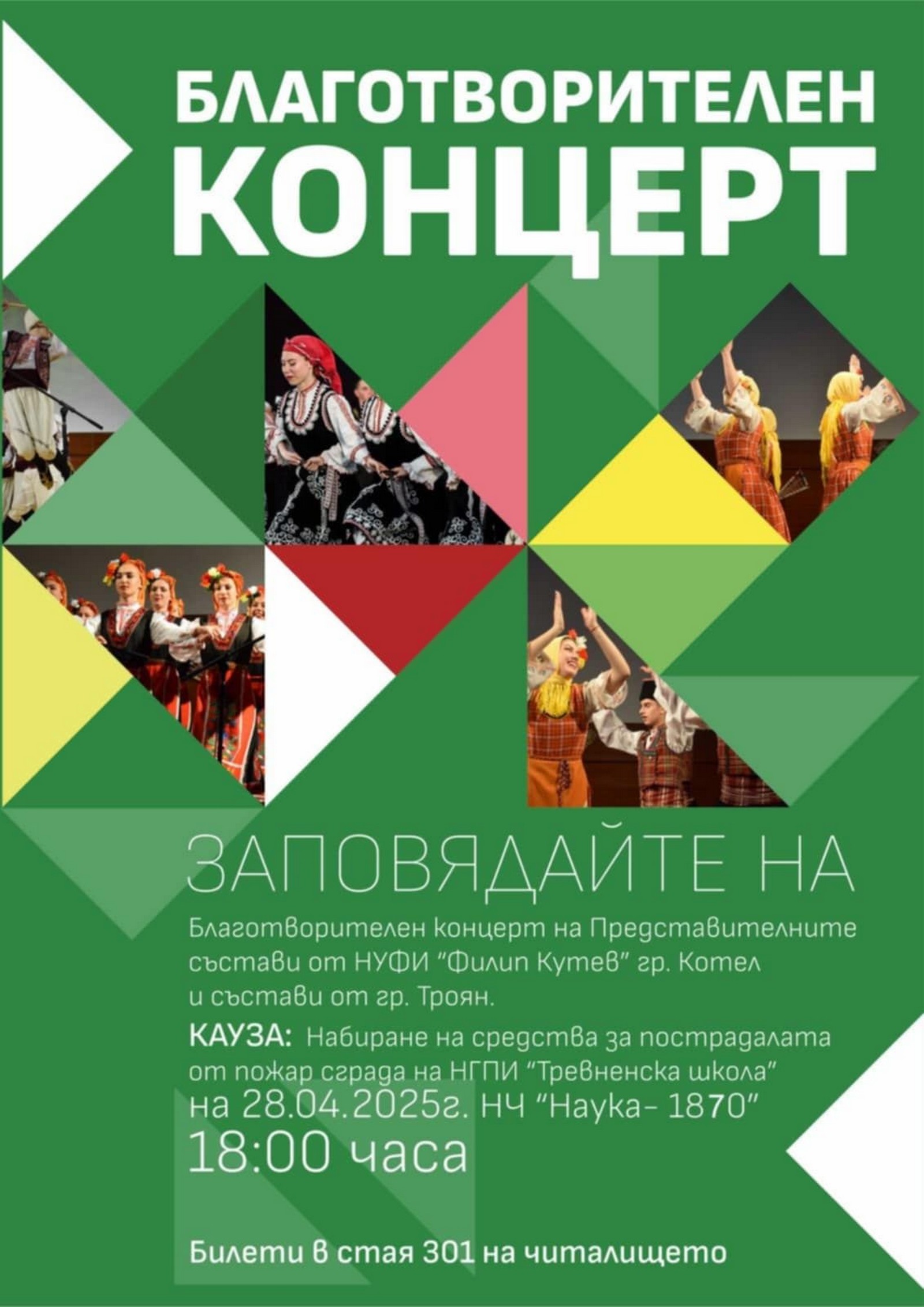 В рамките на конкурса бе проведена и кампания, организирана от котленското музикално училище. Каузата на инициативата: „Набиране на средства за пострадалата от пожар сграда на Националната гимназия по приложни изкуства в гр. Трявна“ бе подкрепена от гости на форума и от ученици от Представителния оркестър и ансамбъл на НУФИ „Филип Кутев“, които дариха паричните си награди. Набраните средства ще бъдат присъединени към тези, които ще постъпят по време на благотворителния концерт на учениците от НУФИ-Котел на 28 април 2025 г., от 18 часа в град Троян, съобщават от училището.