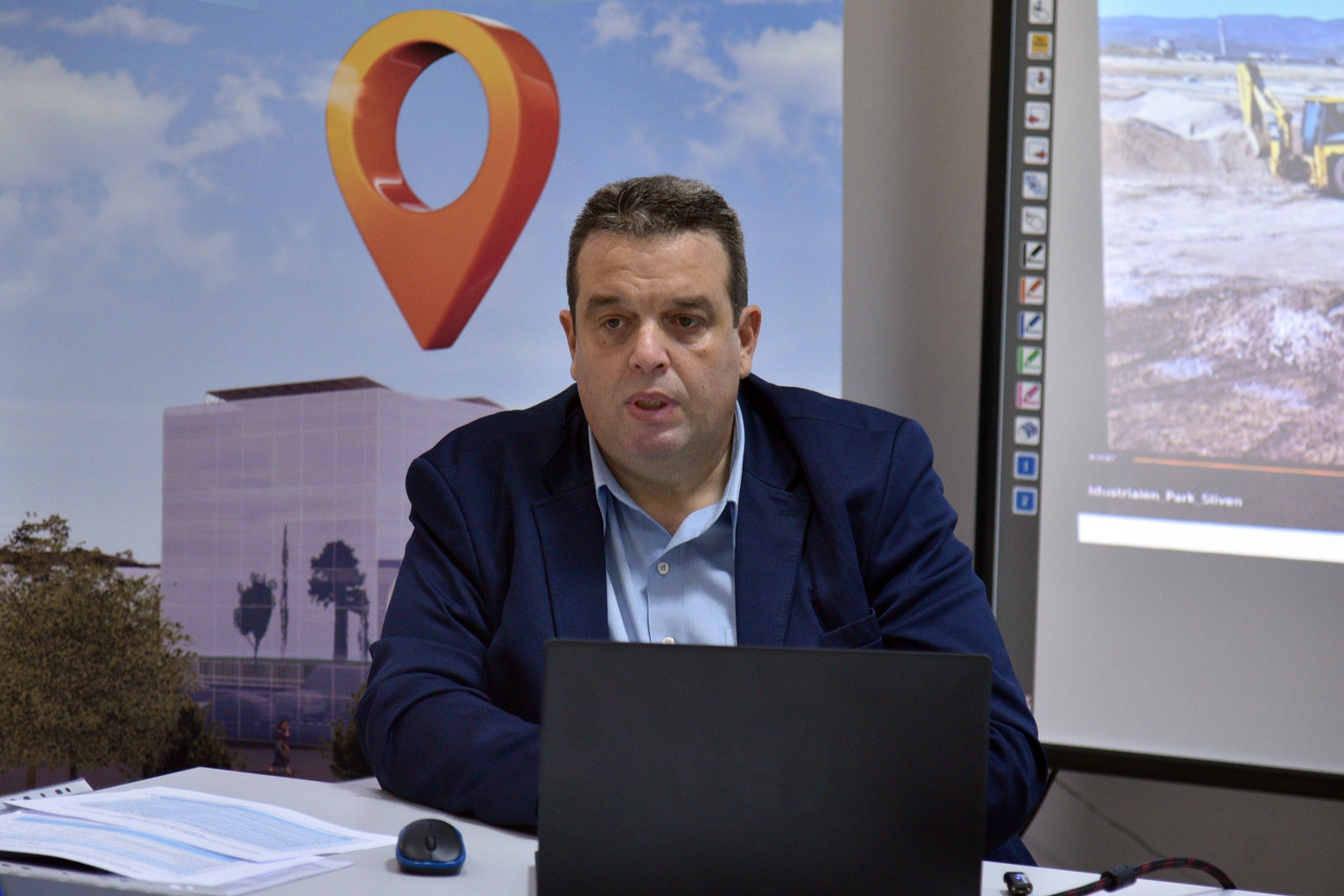 Извършеното по инфраструктурата от началото към днешна дата представи управителят на сливенския Индустриален парк Соломон Москона. Той информира, че за тези шест месеца е извършена значителна работа, съгласно плана. Сключени са всички договори за строителство и надзор по дейностите, изцяло изградени са разпределителна водопроводна мрежа, вътрешна канализационна мрежа, тръбно канална мрежа за разполагане на кабели ниско напрежение, които ще осигуряват захранването с електричество. Изградени са още вътрешна газоразпределителна мрежа, дъждовно-канализационна мрежа, физическа инфраструктура за разполагане на електронни съобщителни мрежи. Москона отчете, че на този етап финансовото изпълнение на двата вида инфраструктура – довеждаща и вътрешна, е съответно 54% и 45%. Той поясни, че посочените проценти представляват размера на изплатените суми по изцяло приключили дейности по конкретния проект. Относно физическото изпълнение на строителните дейности управителят заяви, че то тече по график, като за вътрешната – е 80%, за довеждащата инфраструктура – 70 %. Срокът за изпълнение на вътрешната инфраструктура на северната зона е 30 април 2026 г., а за довеждащата е до края на настоящата година – 31 декември 2025 г.