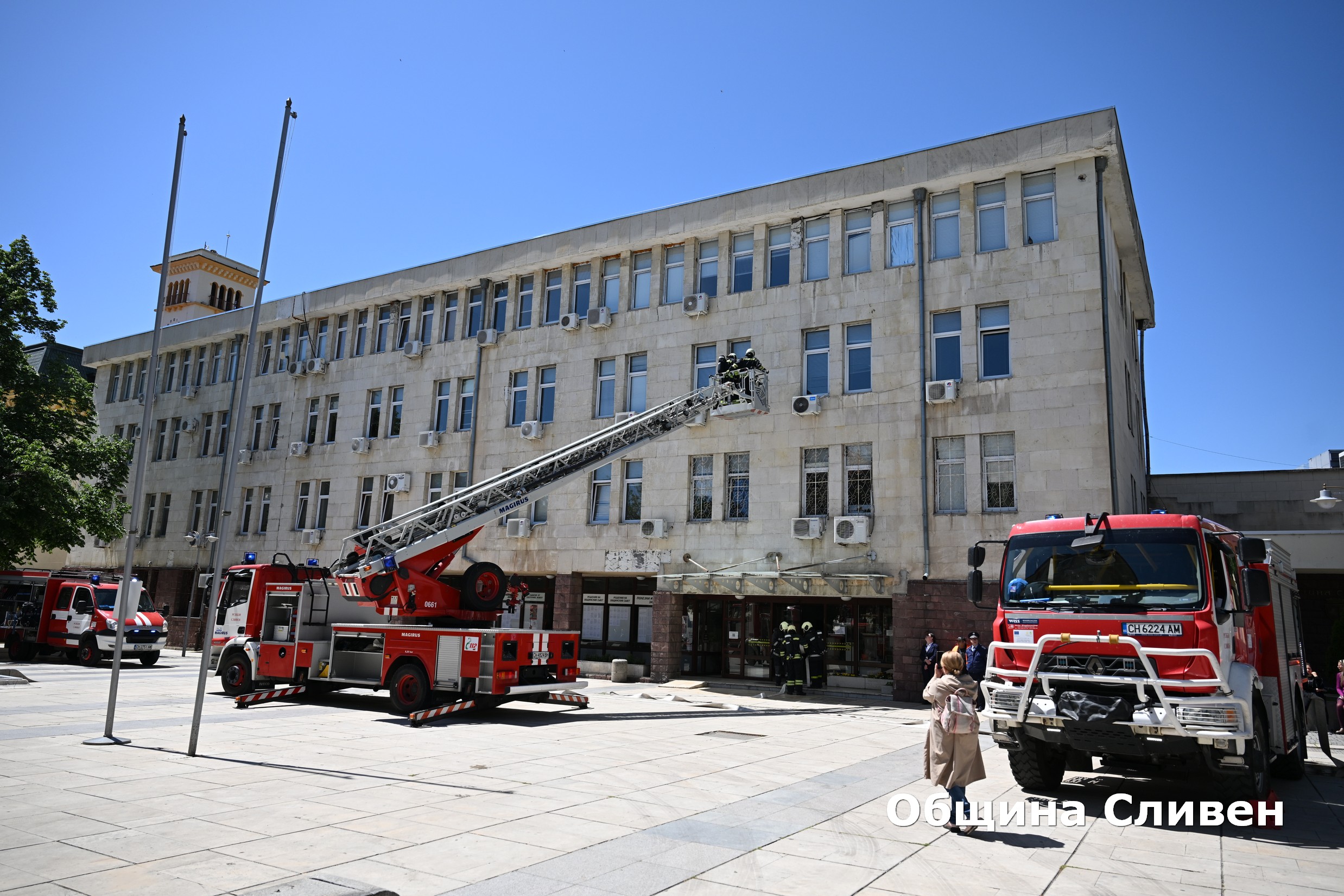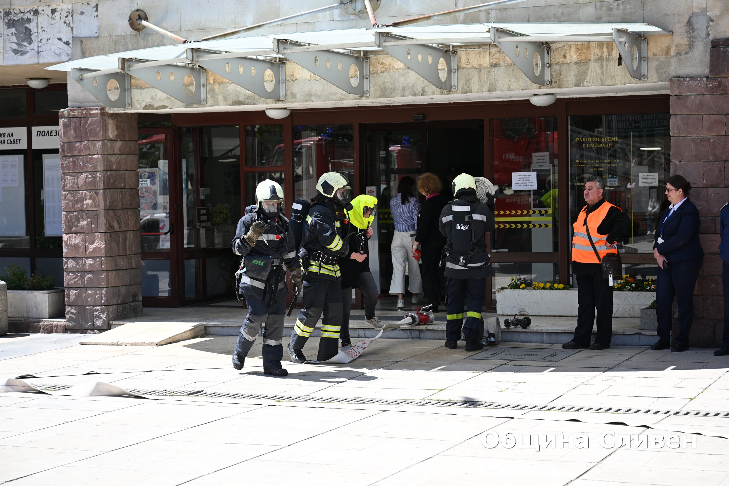 Тренировка с евакуация при възникнал пожар се проведе в северната сграда на Община Сливен днес.