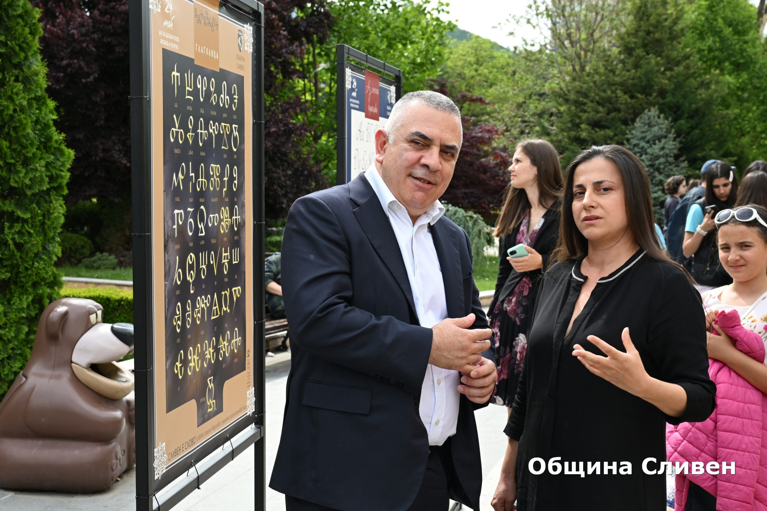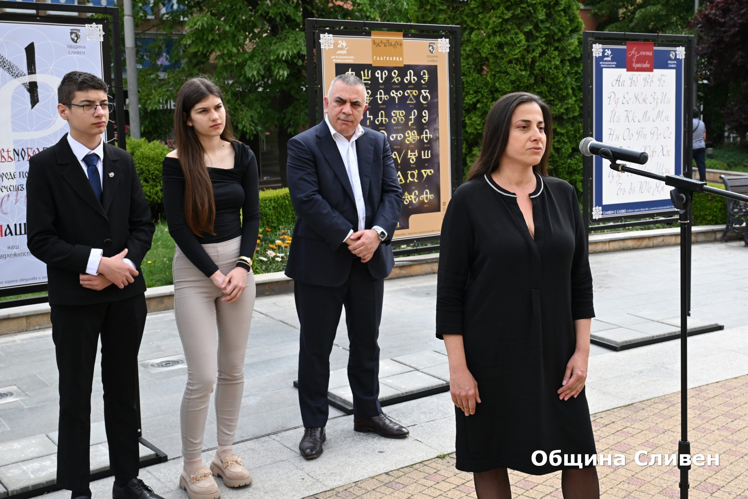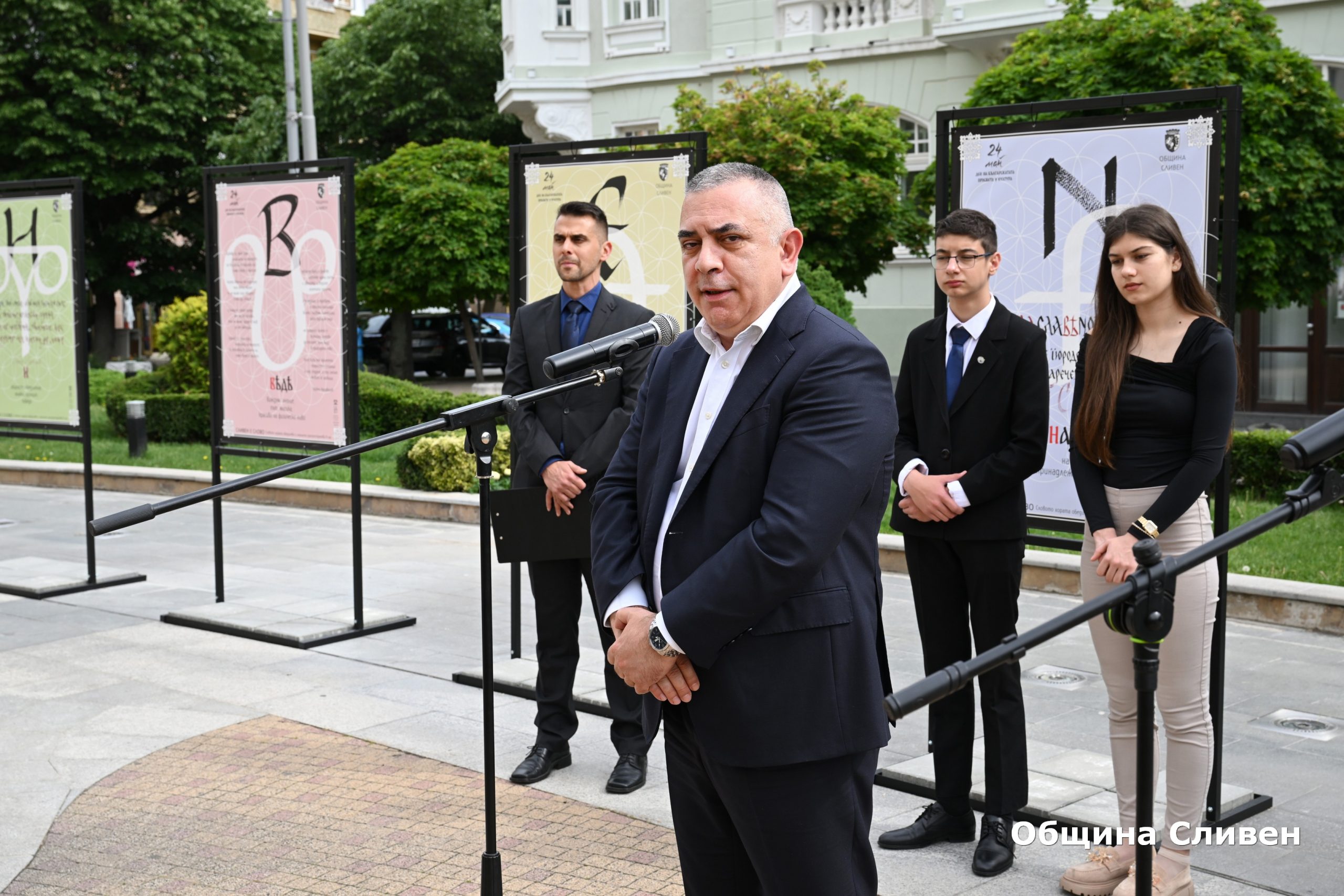 „Словото хората обединява и знанието разпространява в нас“ – това означава името „Сливен“, изписано на глаголица. Всеки може да види този надпис на винилната изложба „Сливен е слово“. Тя беше открита от кмета Стефан Радев на площада пред сградата на Общината, в навечерието на 11 май. Това е Денят, в който българите християни почитат светите равноапостоли – братята Кирил и Методий.