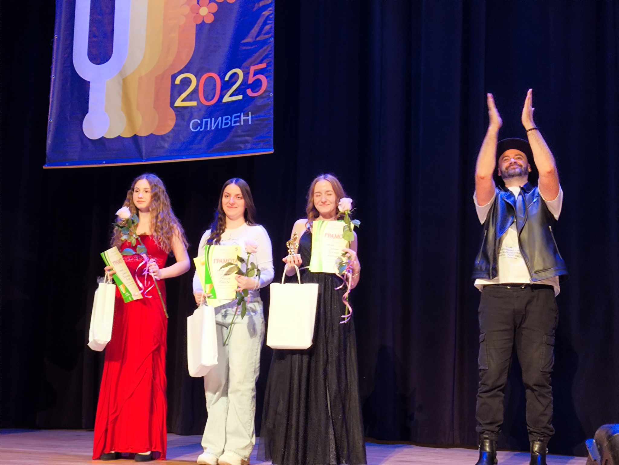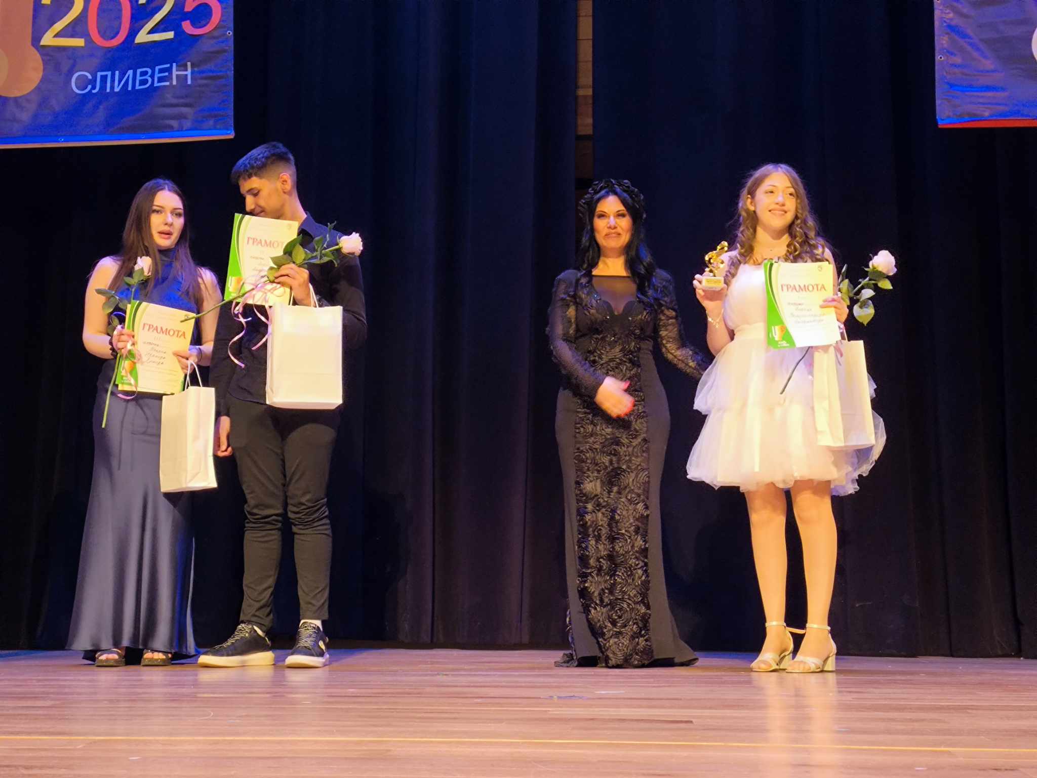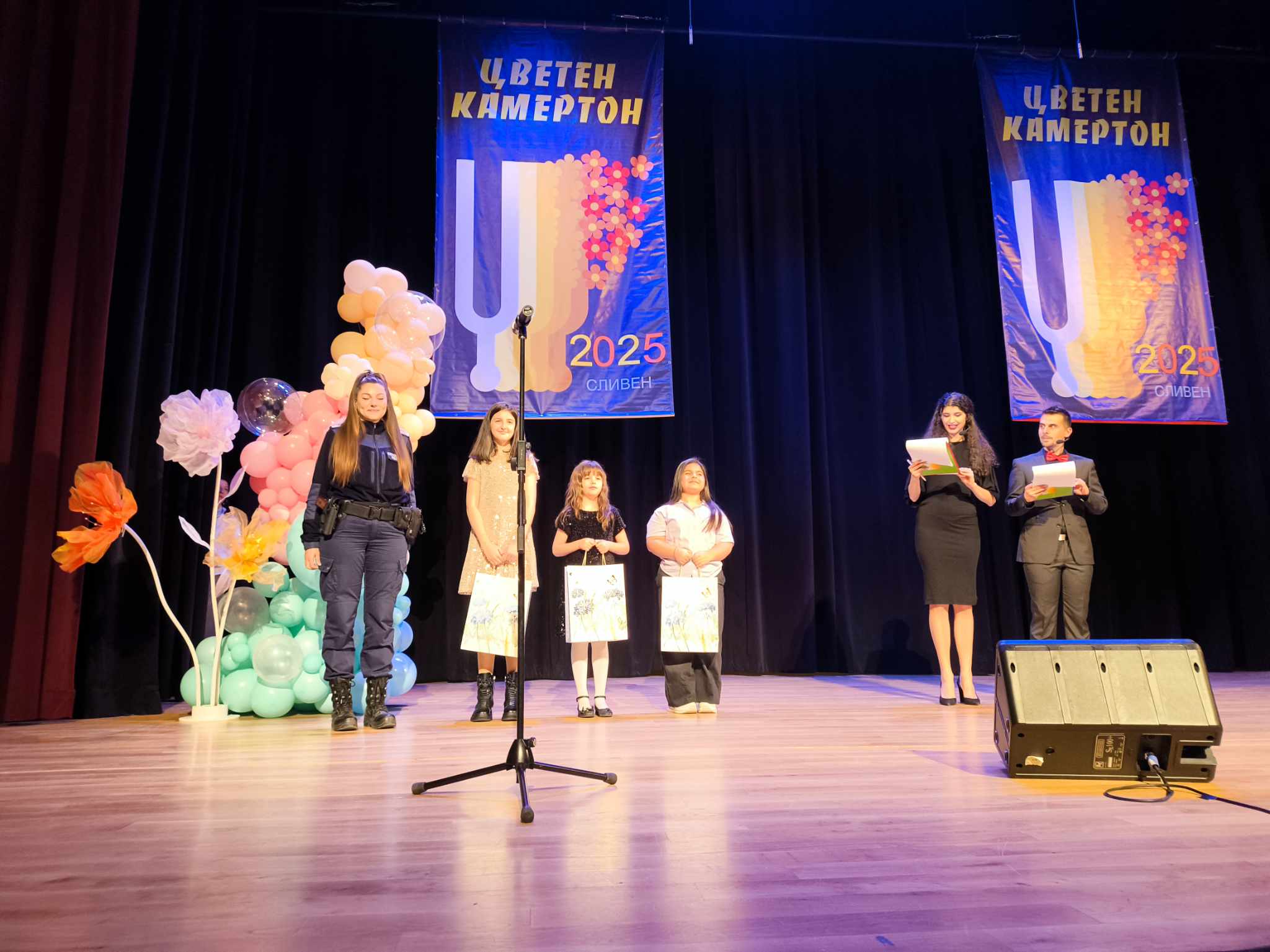 Наградите на Областната дирекция на МВР отидоха при Жаклин Андонова и Благослава Славова от клуб „Ритъм“-Сливен и Стефания Панайотова от вокално студио „Усмивка“-Сливен.