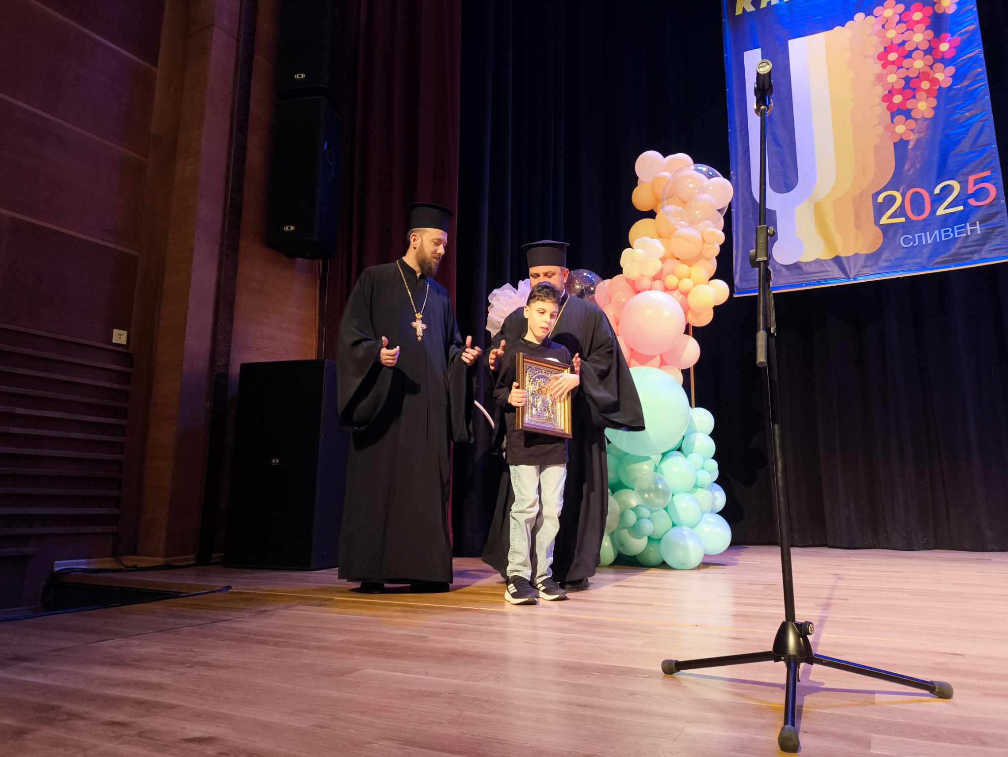 Антон Стоянов от вокално студио „Усмивка“-Сливен получи наградата на Сливенска света митрополия.