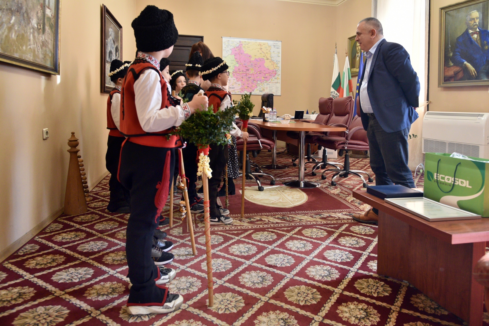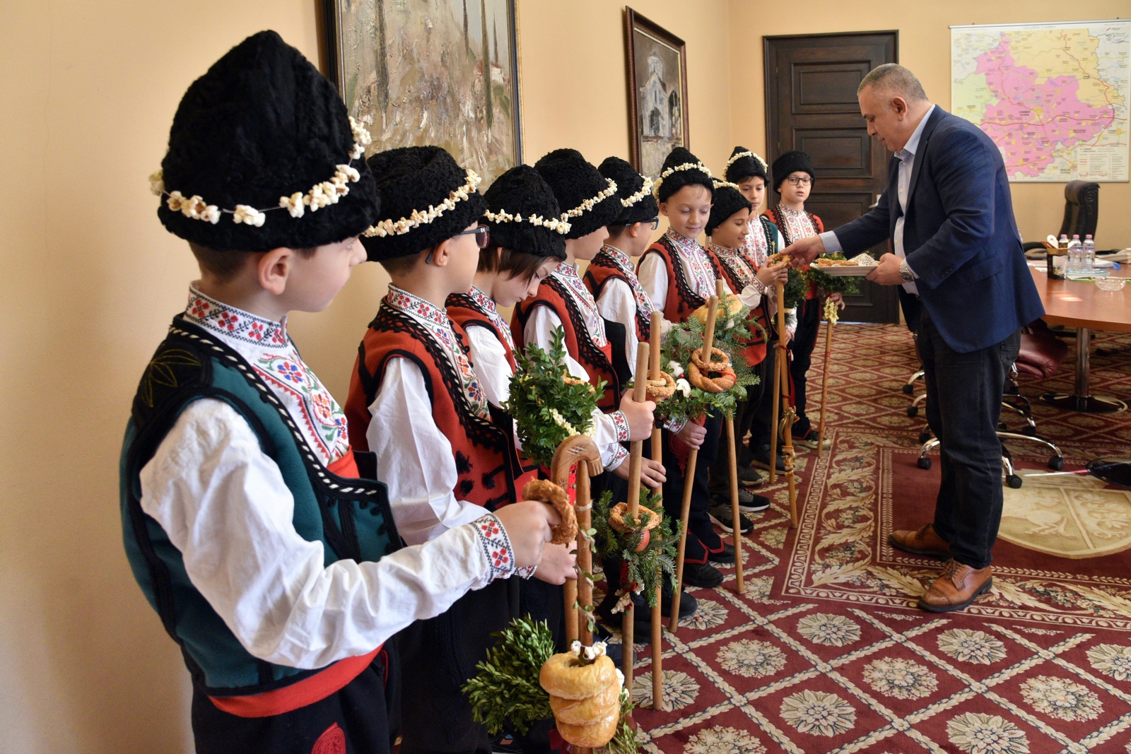 Коледарчета от втори клас на Начално училище „Васил Левски“ гостуваха днес в Община Сливен.