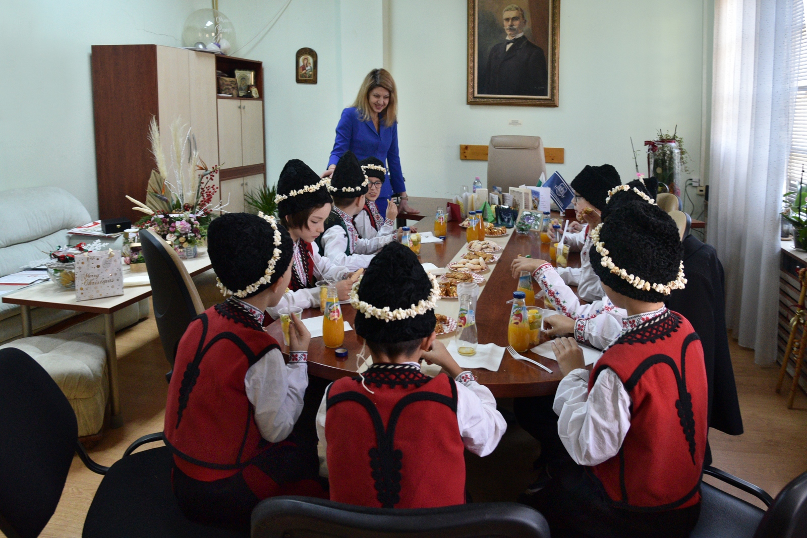 Децата, облечени в традиционни носии, пяха коледни песни и пожелаха много здраве за всички служители в общинската администрация.