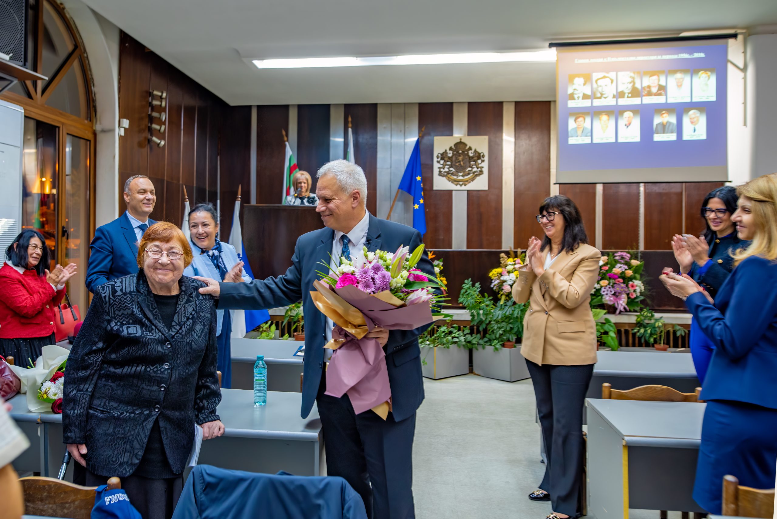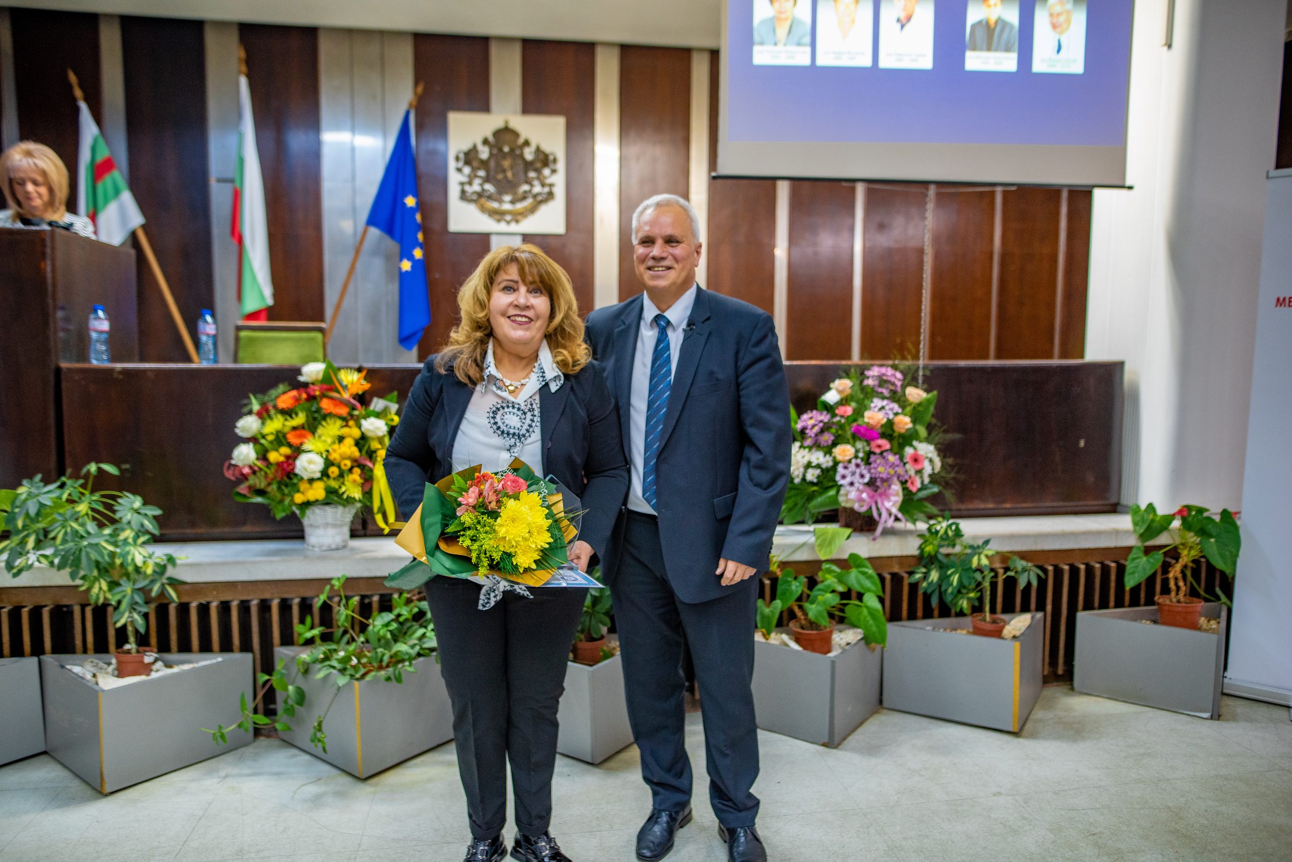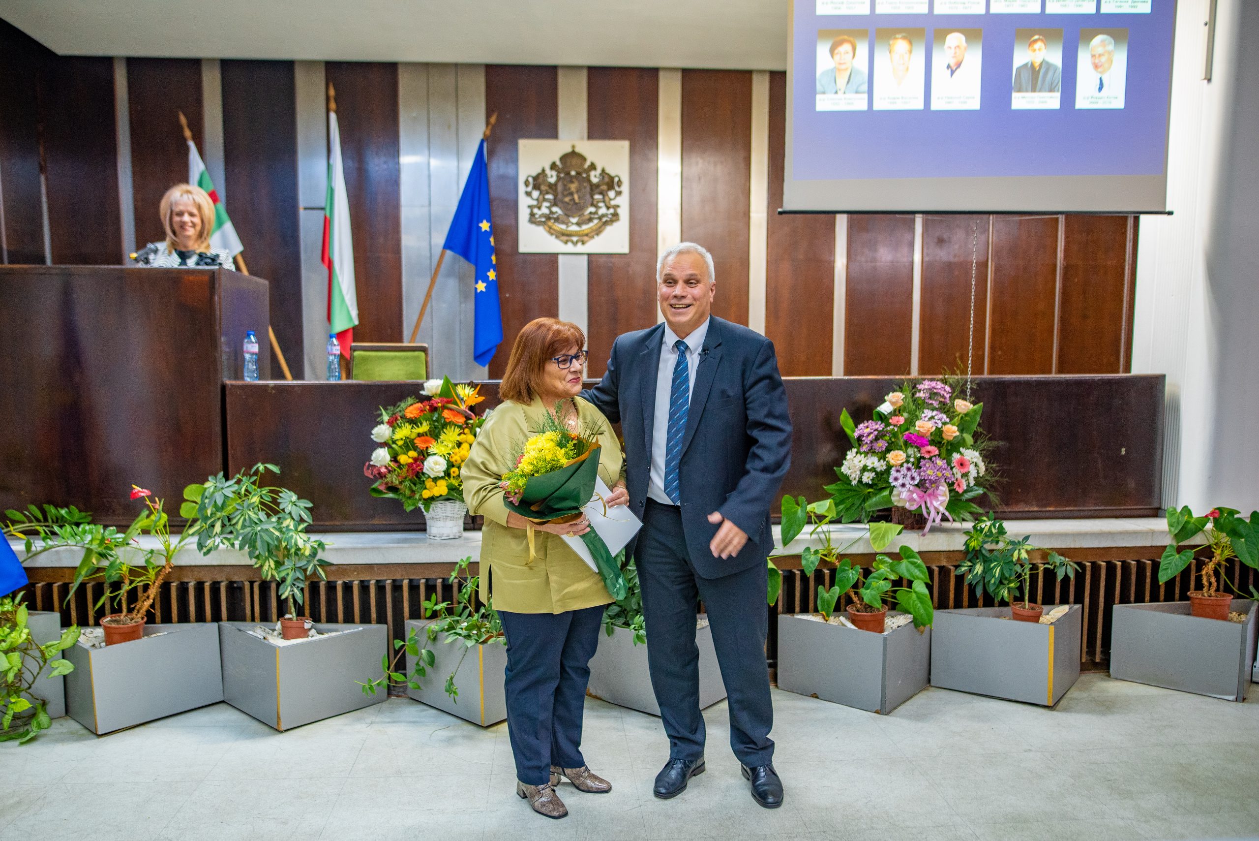 С емоционално слово към присъстващите се обърна доц. Мария Тодорова – дългогодишен главен лекар на болницата. Д-р Петров й благодари за активността през годините, помощта и отношението, което винаги е имала към лечебното заведение, колегите си и пациентите.