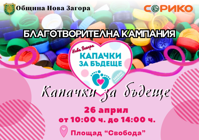 Нова Загора се включва в националната кампания за събиране на пластмасови капачки в подкрепа на здравето на децата в България!
