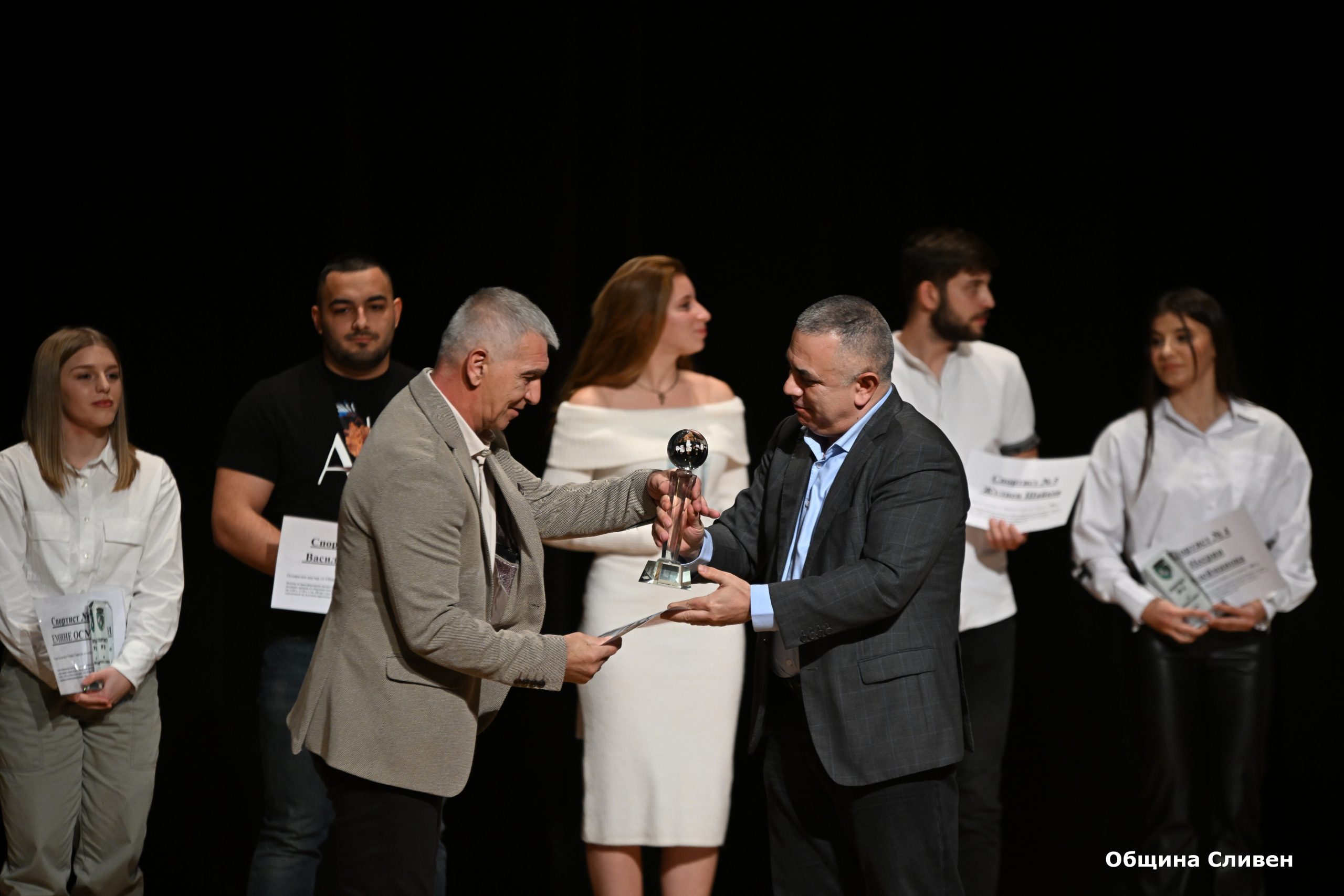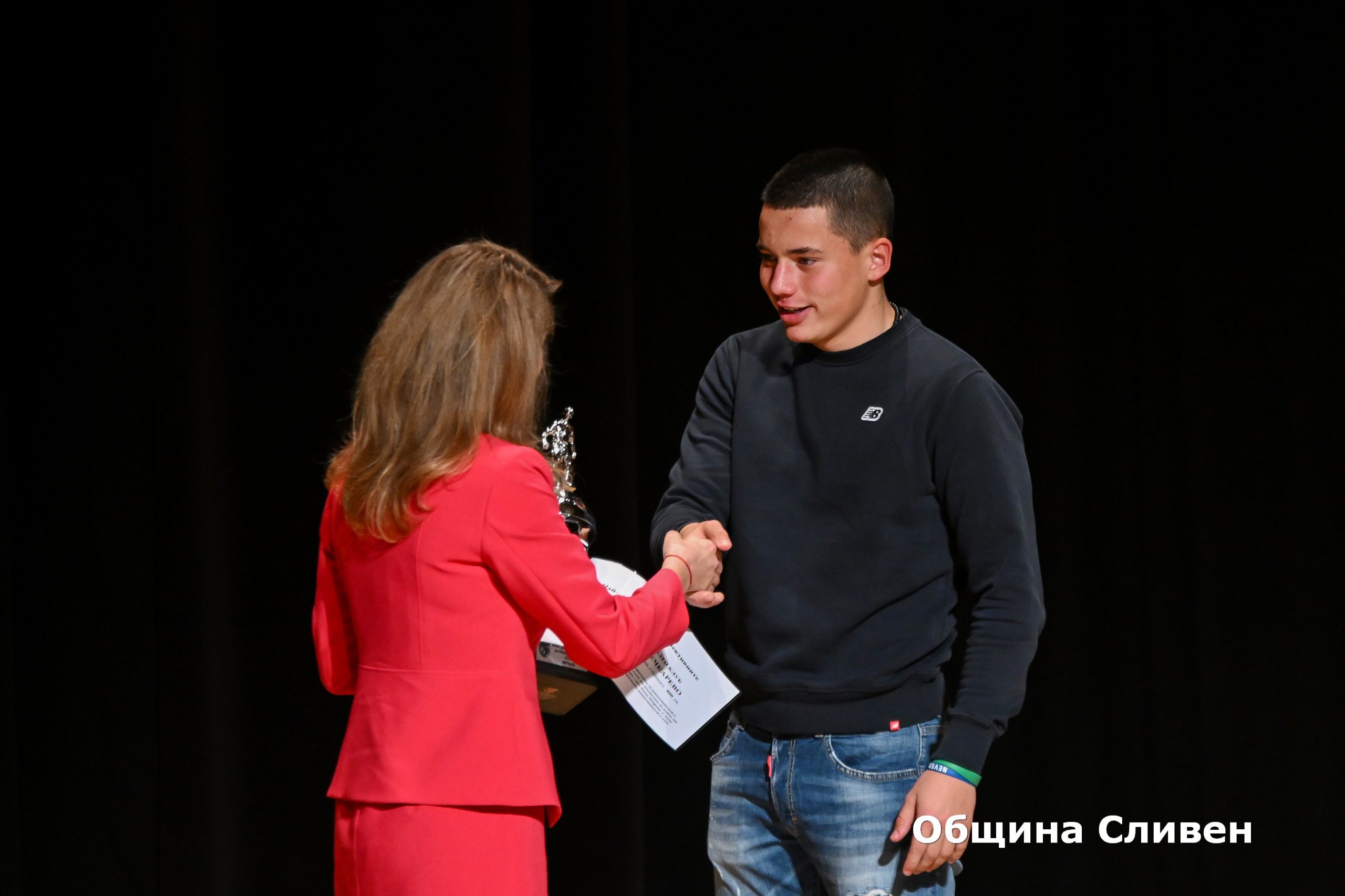 Награди връчиха също зам.кметът Пепа Чиликова и председателят на Постоянната комисия за децата, младежта и спорта към Общинския съвет Пламен Крумов. На събитието присъстваха още председателят на Общински съвет-Сливен Димитър Митев и общински съветници, бивши и настоящи спортисти и треньори, издигнали спортната слава на Сливен и България на най-високи национални и международни спортни форуми.