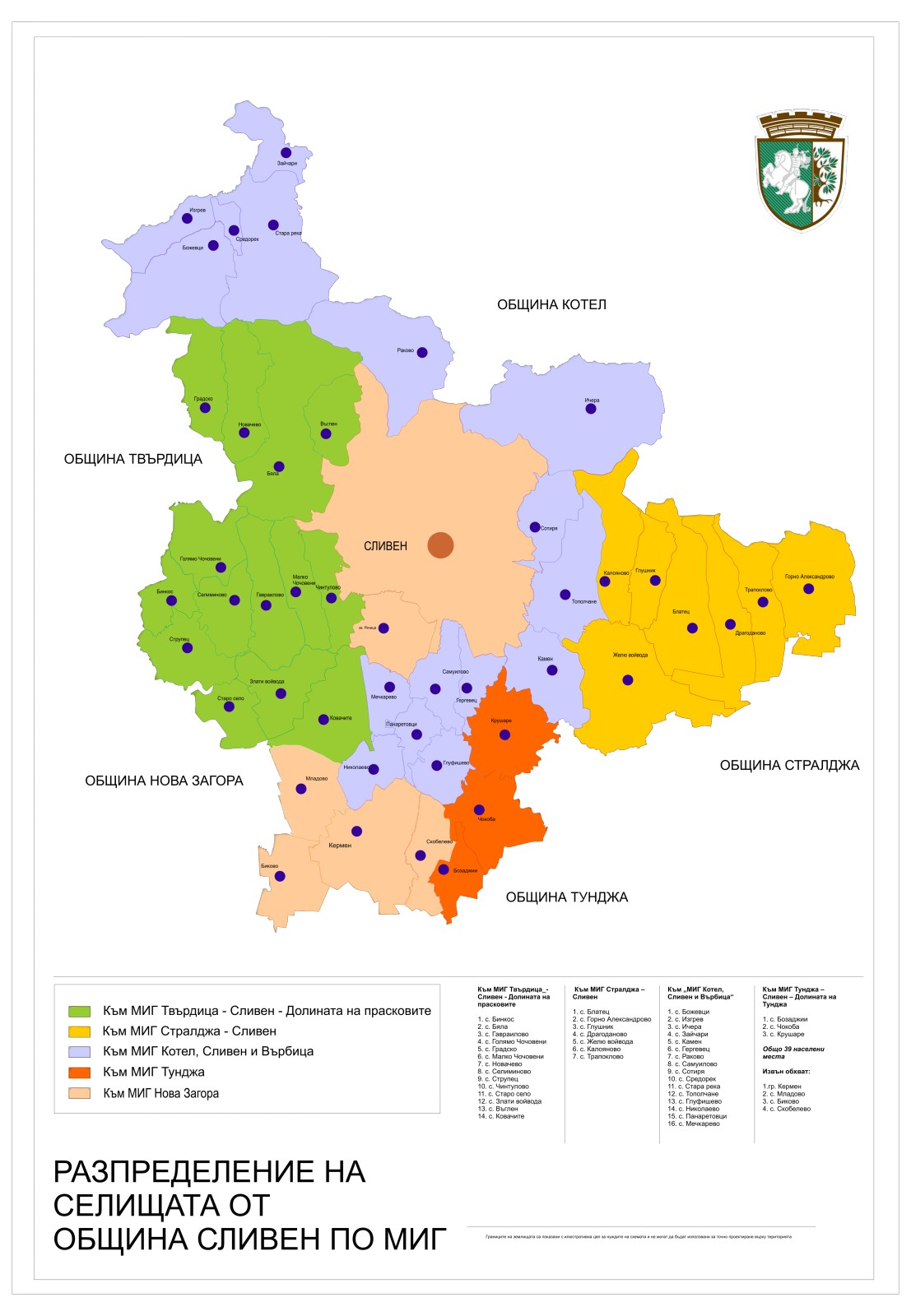 Няколко Местни инициативни групи /МИГ/, в които Община Сливен участва като партньор, са сред одобрените за европейско финансиране. Това става ясно от публикувания в ИСУН списък с проектните предложения, избрани в рамките на стратегията за местно развитие. В него попадат МИГ Стралджа – Сливен 2023, МИГ Тунджа – Сливен – Долината на Тунджа, МИГ Котел, Сливен и Върбица, МИГ Нова Загора – Сливен и МИГ Твърдица – Сливен – Долината на прасковите. За първи път всички села от община Сливен, която е най-голямата по територия община в България, ще имат възможност за финансиране на проекти от Програмата за развитие на селските райони. То се осъществява по линията на подхода ЛИДЕР, чрез изпълнение на Стратегия за Водено от общностите местно развитие, което се прилага от създадени Местни инициативни групи (МИГ).