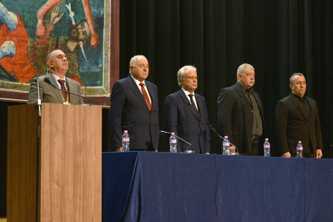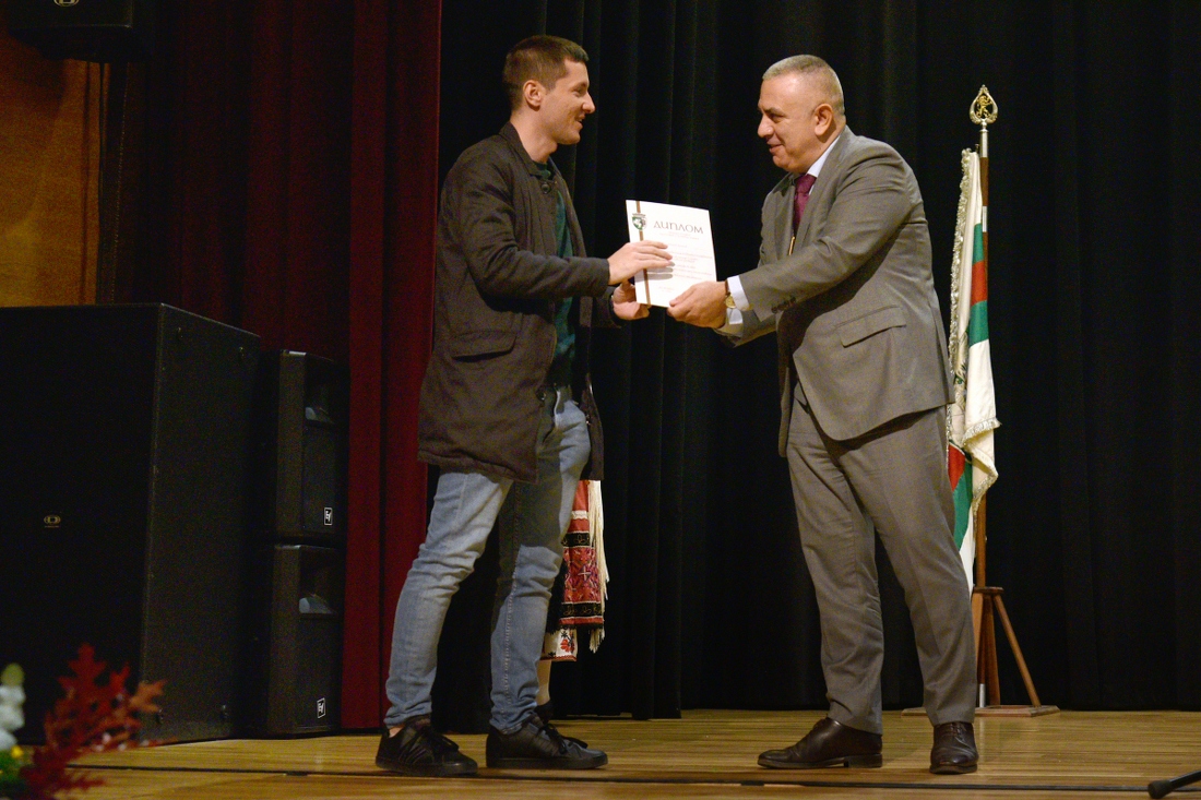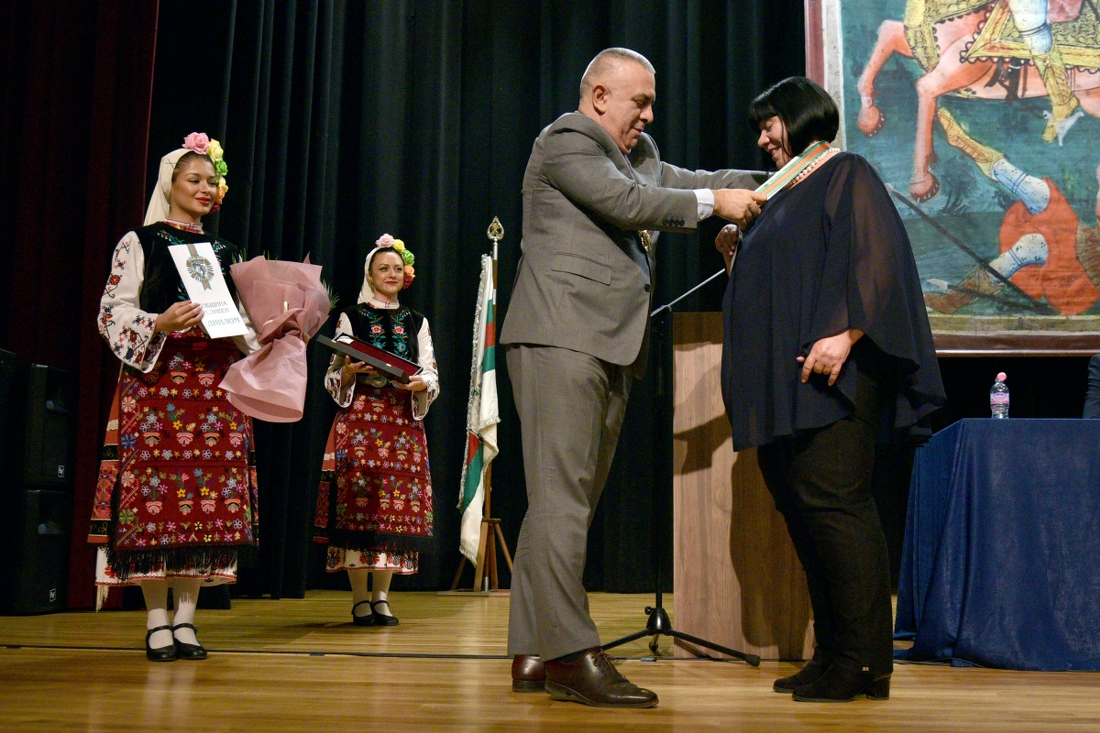 Своите поздравления за празника отправиха от сцената в залата сливенският митрополит Арсений и областният управител Чавдар Божурски.