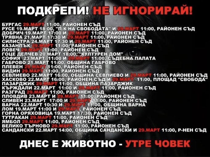 Протестът в Сливен ще се проведе пред Районен съд в два дни – на 23 март (неделя) от 17:00 ч. и на 29 март (събота) от 11:00 ч.