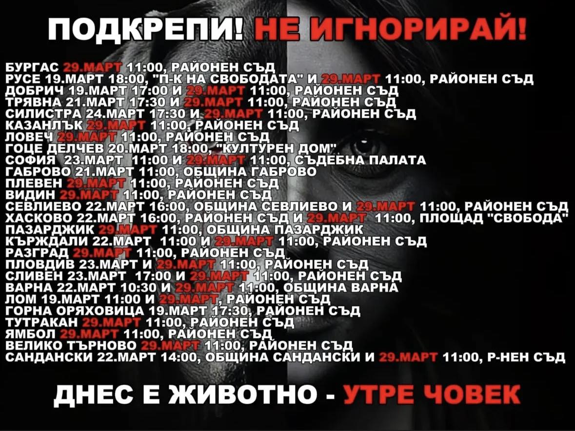 „Призоваваме всички съпричастни да се присъединят към протест срещу ужасяващото насилие над животни, извършвано с цел печалба чрез разпространение на мъчителни видеа. Не можем да останем безразлични!