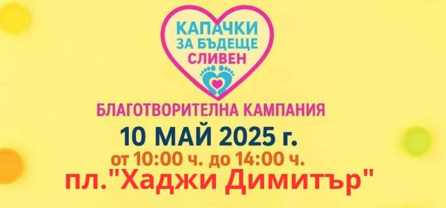 За поредна година Сливен се включва в благотворителната кампания на „Капачки за Бъдеще“ на 10 май. Предавателният пункт ще е на площад „Хаджи Димитър“, от 10:00 ч. до 14:00 ч. Организатори на кампанията са “Клуб за Бъдеще-Сливен“.