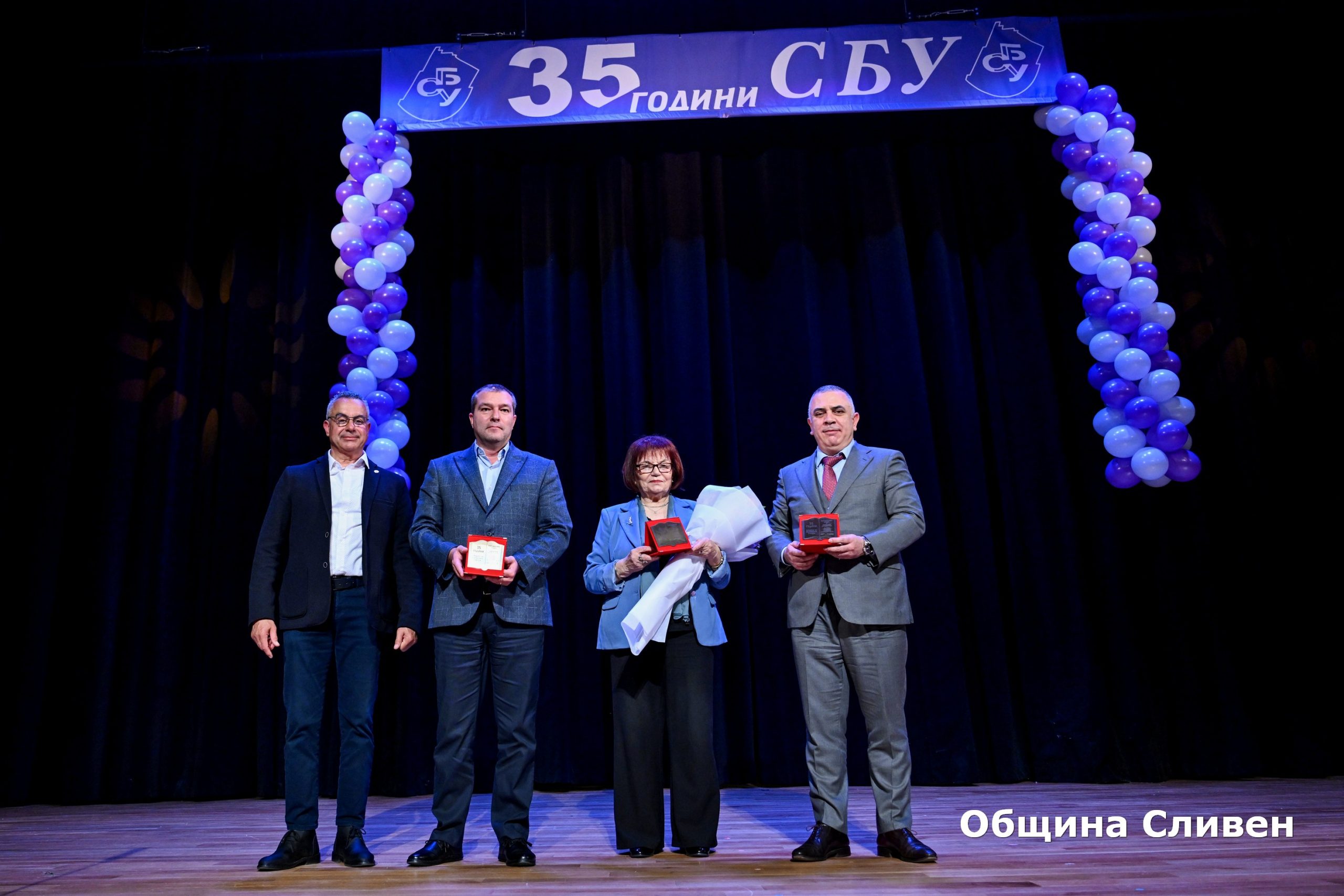 Той използва случая и в навечерието на Великден пожела на всички здраве, щастие и вдъхновение. Областният координатор на СБУ Иван Господинов връчи плакет на Стефан Радев по повод годишнината и доброто сътрудничество. Плакети получиха председателят на СБУ Янка Такева и началникът на РУО-Сливен Боян Аксаков, които също присъстваха на събитието.