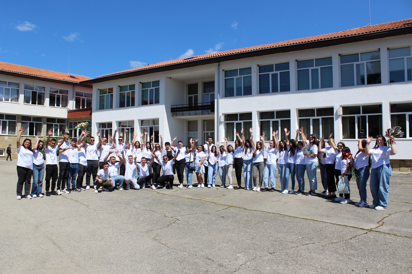 С много положителни емоции, ученици, учители и приятели бяха изпълнили двора на гимназията, за да запечатат последния учебен ден заедно.