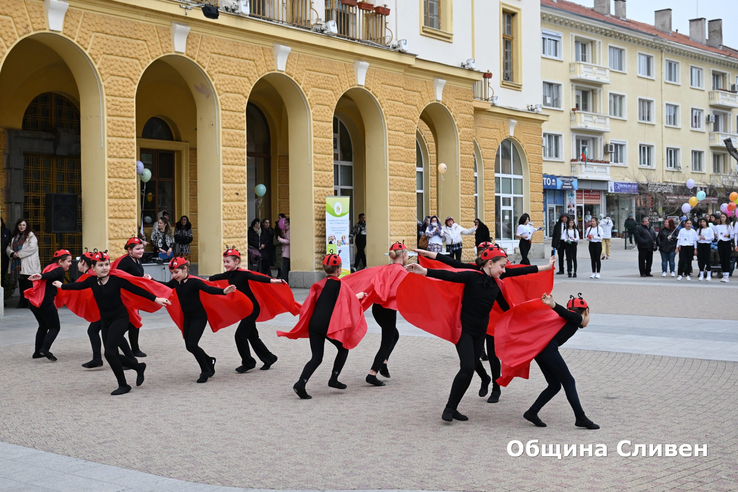Кулминацията на честванията бе днешният концерт пред сградата на Общината, на който децата на Сливен предадоха на публиката своя урок по приятелство и толерантност. Сред тях бяха Кристияна Узунова, Тиана Иванова и Тодор Иванов, от Клуб за поп и рок изпълнители „Ритъм“, децата от Dance studio „Barbie“, от Детско-юношески танцов състав „Бисерче“ при военния клуб и от група за модерни танци „11 стъпки“ при СУ „Константин Константинов“.