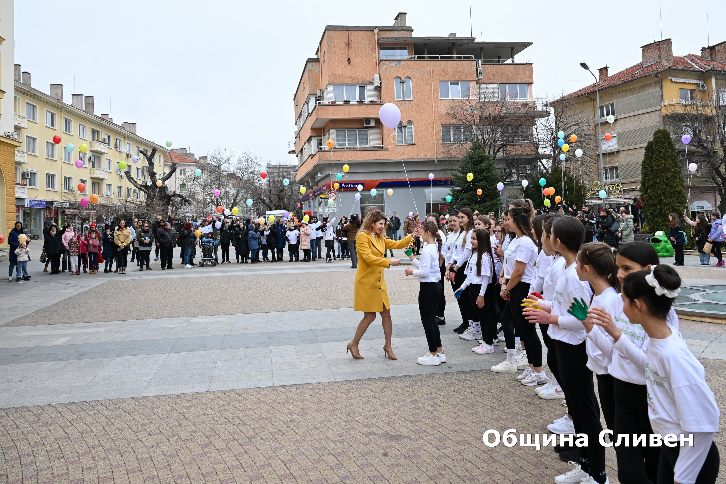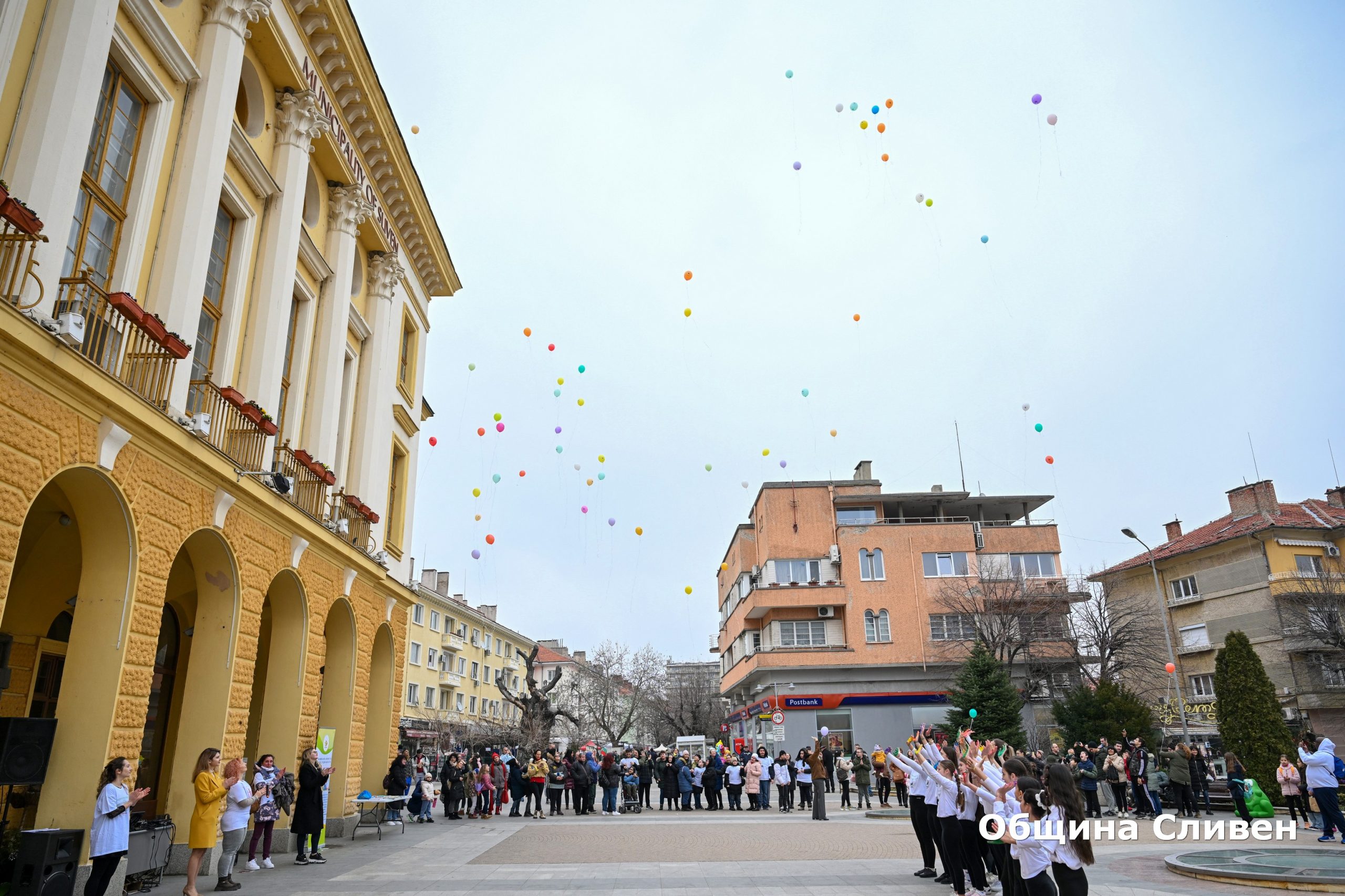 Точно в 13 ч., след края на концерта, всички присъстващи пуснаха в небето цветни балони в знак на солидарност към милионите болни по света. Балони в знак на съпричастност пуснаха екипите и малчуганите от Детски ясли № 3, 14 и 15 в Сливен.