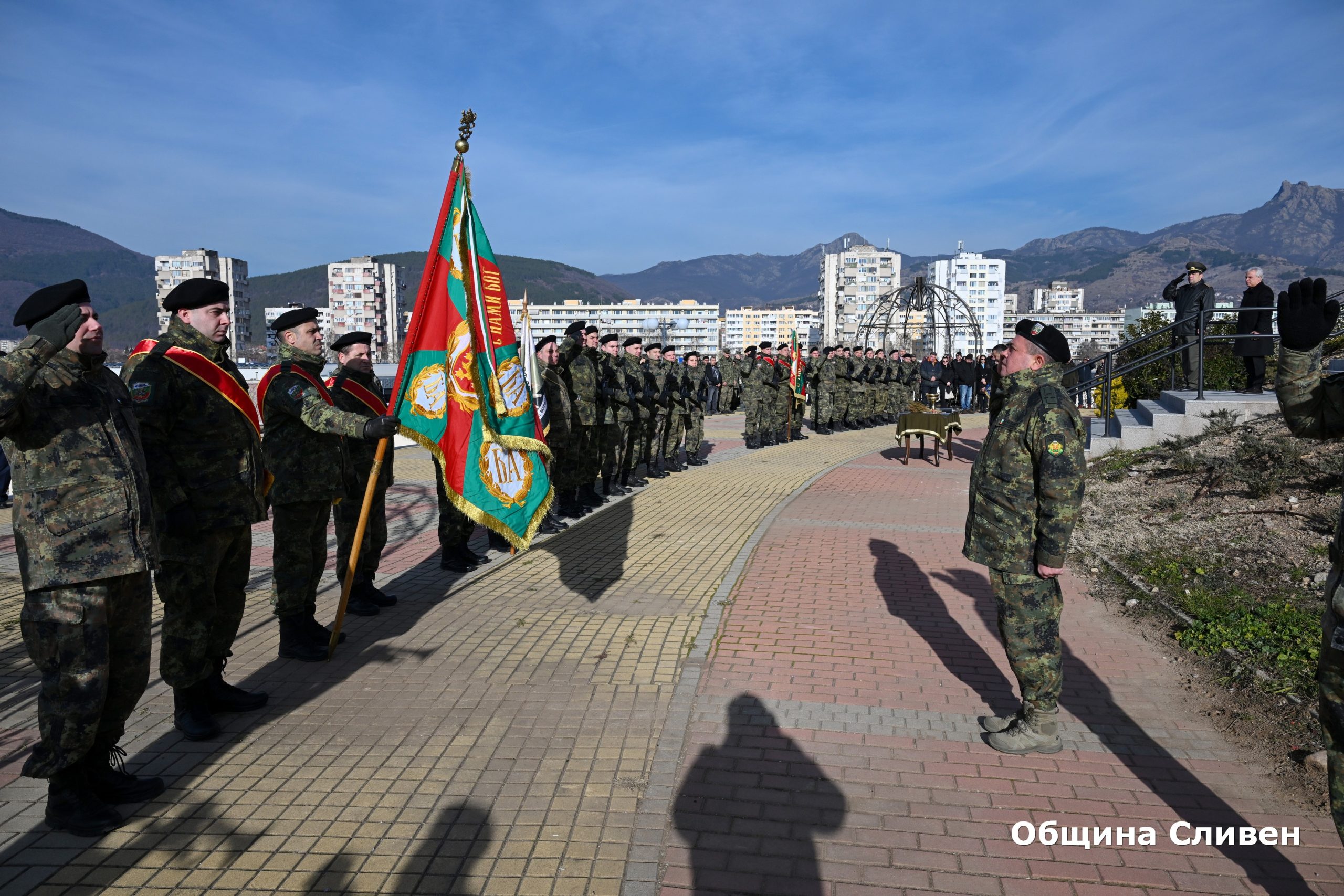На събитието присъстваха също председателят на Общински съвет-Сливен Димитър Митев и командирът на военното формирование полк. Любомир Вачев. В ритуала участваха почетен караул и Военният духов оркестър.